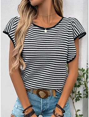 Dámské Tričko Tričko Top Volány Tisk Proužky Módní stylové Klasické Krátký rukáv Tričkový Běžné topy Denní Jdeme ven Víkend Černá Léto Jaro