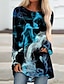 Dámské tričko s dlouhým rukávem kulatý výstřih dlouhá tunika květinová grafika gradient elegantní vintage stylové běžné topy každodenní potisk bílá žlutá červená modrá tmavě zelená podzim předpodzim