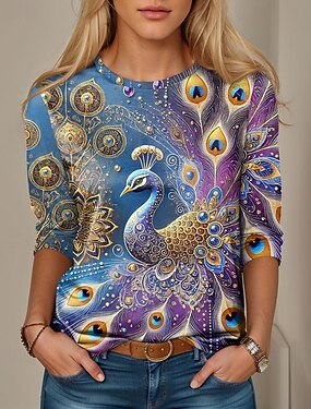 Dámské tričko dlouhý rukáv crew neck dlouhý rukáv tunika grafické zvíře pták vintage stylové klasické běžné topy denní víkendový tisk modrá zelená předpodzim