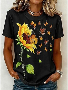Dámské Tričko Tisk Květinový Grafika Módní stylové Základní Krátký rukáv Tričkový Běžné topy Ležérní Denní Víkend Černá Léto Jaro