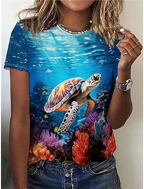 Dámské Tričko Letní vrcholy Tisk Scéna Mořská želva Klasické Na běžné nošení Krátký rukáv Tričkový Crop Tops Denní Víkend Duhová Léto Jaro Podzim