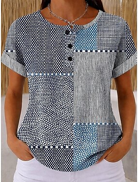 Dámské Tričko Tričko Top Knoflíky Tisk Grafika Geometrický Čechy Vinobraní stylové Krátký rukáv Do V Běžné topy Denní Jdeme ven Víkend Vodní modrá Bílá Fialová Rubínově červená Námořnická modř Léto