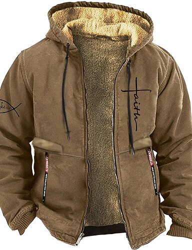 Pánské maskování Kovbojské Fleece Kapucky Denní Vintage Retro Dlouhý rukáv Kapuce Dovolená Streetwear Hnědá Zip Kapsy Podzim Zima Návrhář