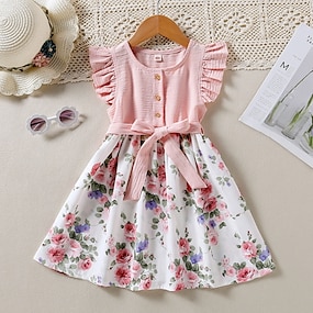 Děti Dívčí Šaty Květiny Bez rukávů Ležérní Aktivní Módní Bavlna Nad kolena Volnočasové šaty Áčkové šaty Léto Jaro 2-8 let Více barev Světlá růžová