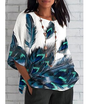 Dámské Košile Tisk Peří Denní Na běžné nošení 3/4 délka rukávu Tričkový Běžné topy Denní Dovolená Vodní modrá Bílá Světlá růžová Léto Jaro Podzim