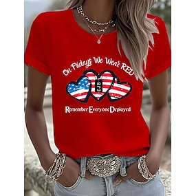 Tričko pro ženy k Dni nezávislosti - patriotické grafický motiv vlajky vintage stylové klasické s krátkým rukávem kulatý výstřih pravidelný střih každodenní víkendové modré černé bílé červené šedé