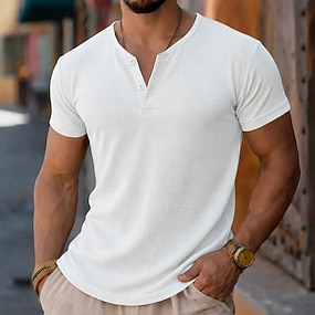 Pánské Tričko Henley Tričko Top Lněné tričko Krátké rukávy Bez vzoru Módní Designové Základní Měkké Do V Henley Ležérní Dovolená ulice Léto Černá Bílá Šedá Tričko Henley