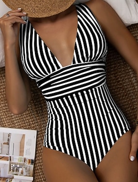 Dámské Plavky Jeden kus Bikiny Kraťasy Plavky Nabírané šaty Zeštíhlující Volná záda prázdniny Oblečení na pláž Proužky Ponořit se Bez rukávů Plavky