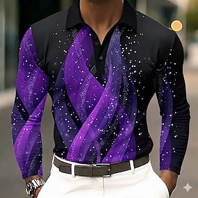 Pánské Geometrické tvary Pólo Dlouhý rukáv Polo tričko Klopa Na běžné nošení Venkovní ulice Oblečení na atletiku Denní nošení 3D tisk Knoflíky Jaro Podzim Zima Černá Fialová Šedá