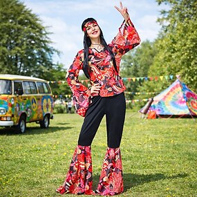 Retro 60. léta Hippie Úbory Plesové šaty Hippie Maškarní kostým Dámské Karneval Plesová maškaráda Dovolená Párty Pride Parade Dospělé Vrchní deska Kalhoty