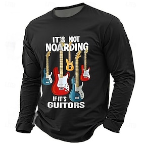 Pánské Kytara Legrační slang Tričko Dlouhý rukáv tričko 3D tisk Tričkový Košile Módní Denní Základní Ležérní Denní ulice Vodní modrá Černá Trávová zelená Léto Jaro Oblečení S M L XL XXL XXXL