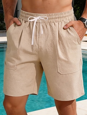 Pánské Kraťasy Lněné šortky Letní šortky Plážové šortky Šňůrky Elastický pas Straight-Leg Bez vzoru Pohodlné Prodyšné Délka kolen Venkovní Denní Dovolená Módní Klasický styl Σκούρο Χακί Černá