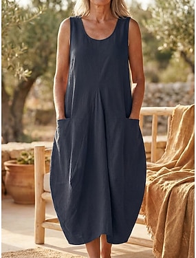 Dámské Midi šaty Imitace bavlny a lnu Úpletové šaty Letní šaty Volnočasové šaty stylové Na běžné nošení Denní Dovolená Rande Běžný Bez vzoru Bez rukávů Tričkový Oranžová Béžová Šedá Léto