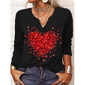 Valentýnské dámské tričko srdce neformální běžné vrcholy dlouhý rukáv V výstřih asymetrický výstřih patchwork potisk regular fit dovolená každodenní černé podzim zima