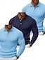 Pánské Top z žebrovaného úpletu Golfová košile ulice Ležérní Klopa Dlouhý rukáv Základní Moderní Bez vzoru 2 ks Knoflíky Jaro Podzim Celý rok Běžný Šedá / Námořnická modř Šedá / bílá Modrá + bíl