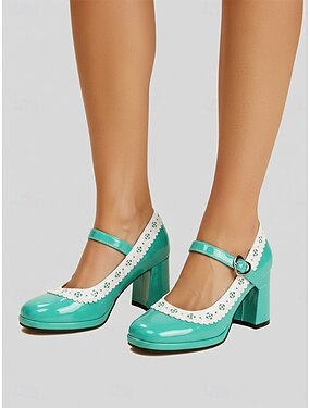 dámské retro lodičky s dvojitým páskem mary jane – robustní lodičky s kulatou špičkou na podpatku pro vintage, cosplay a denní nošení