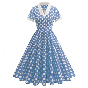 Rockabilly Polední Šaty na šaty Krátké rukávy Puntíkované Rozevláté Maškarní kostým Dámské Karneval Valentýna Ležérní Maturita Retro tematická párty Dospělé Šaty Jaro