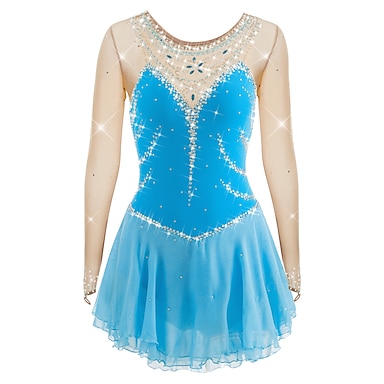 Šaty na bruslení Dámské Dívčí Buz Pateni Šaty Modrá Díra na palec Otevřít Zpět Síťka Vysoká pružnost Trénink Soutěž Bruslařské oblečení Klasický Křišťál a napodobenina Dlouhý rukáv Bruslen