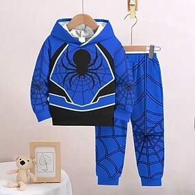 míle morálka kostým halloween chlapci 3d pavouk sada mikina a kalhoty dlouhý rukáv 3D tisk podzim zima aktivní móda cool polyester děti 3-12 let venkovní pouliční dovolená regular fit