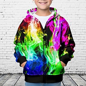 Chlapecké 3D oheň Kapuce Kabát Svrchní oblečení Dlouhý rukáv 3D tisk Podzim Zima Módní Šik ven Chladný Polyester Děti 3-12 let Zip Kapuce Venkovní Ležérní Denní Běžný