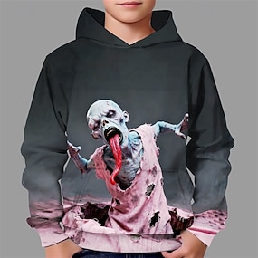 předvečer Všech svatých Chlapecké 3D Grafika Kapuce Dlouhý rukáv Jaro Podzim Módní Šik ven Děti 4-12 let Kapuce Venkovní Ležérní Denní Běžný