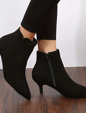 elegantní dámské černé kotníkové boty se špičatou špičkou z umělého semiše se zapínáním na zip – ideální na večerní akce, kancelářské oblečení a módní výlety