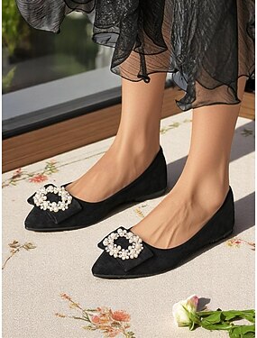 dámské černé kalhoty se špičatou špičkou s perleťovým akcentem - elegantní semišové baletní boty pro příležitostná schůzka a každodenní outfity