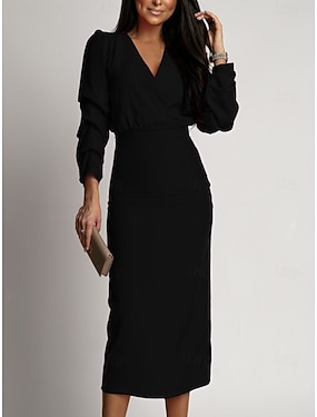 Dámské Midi šaty Černé šaty Pletené šaty Zimní šaty Koktejlky Elegantní šaty Kancelář Běžný Pevná barva Dlouhý rukáv Do V Vojenská zelená Černá Podzim Zima