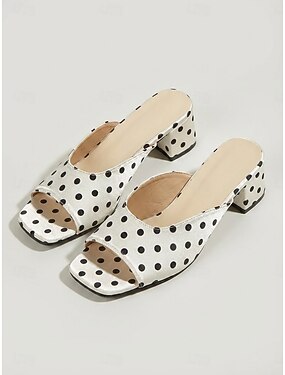 Dámské puntíkované sandály na blokovém podpatku – nazouvací pantofle s otevřenou špičkou, retro elegantní pantofle na nízkém podpatku na pláž, dovolenou na ostrově, do letoviska &letní oblečení
