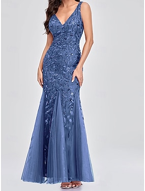 Šaty matky nevěsty šaty pro svatební hosty elegantní party V-výstřih dlouhé šaty bez rukávů s aplikacemi