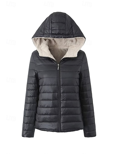 Dámské Neformální bunda Zahřívací Pohodlné Zip Kapsy Módní Venkovní Bez vzoru Jdeme ven Víkend Zip Standardní Kapuce Běžný Dlouhý rukáv Svrchní oděvy Černá Světlá růžová Bordó Podzim Zima