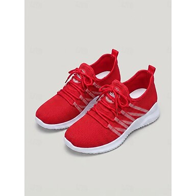 Dámské červené prodyšné pletené tenisky – lehké šněrovací boty na chůzi, pohodlné ležérní sportovní boty na chůzi, cestování &denní nošení