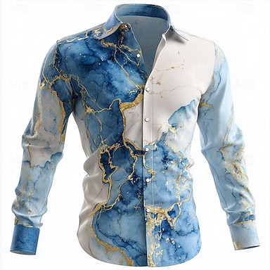Pánské Mramor Abstraktní tekuté umění Košile Košile na knoflíky Dlouhý rukáv Móda pro volný čas Venkovní Na den Jaro Podzim Přehnutý 3D tisk Len jako košile Vodní modrá Fialová