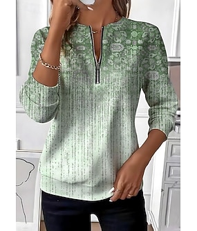 Dámské Svetrová mikina Mikiny na zip Zip Tisk Grafika Kašmírový vzor Módní Na běžné nošení Dlouhý rukáv Tričkový Kulatý Běžné topy ulice Na den Vodní modrá Trávová zelená Béžová Podzim Zima