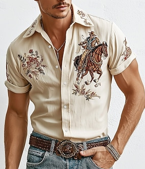 Pánské Květiny Kovbojské Košile Westernová košile Krátký rukáv Vintage Retro Venkovní Dovolená Léto Jaro Přehnutý 3D tisk košile s límečkem Len jako košile Meruňková