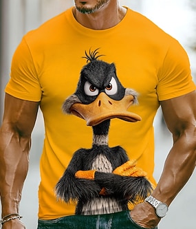 Pánské Zvíře Legrační Kachna Tričko Krátký rukáv tričko 3D tisk Tričkový Košile Přehnaný Designové Párty Dovolená Černá Žlutá Léto Jaro Oblečení S M L XL XXL XXXL