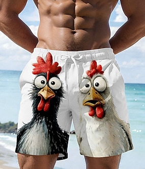 Pánské Kohout kuřátko Legrační Plavecké trenýrky Plavky pánské Surfovací šortky Středně vysoký pas Havajské Plážová dovolená Boční kapsy Podšívka ze síťoviny Elastická šňůrka v pase Návrhář Oblečení
