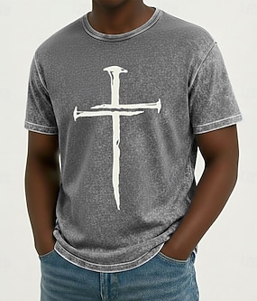 Pánská bible Kříž Ježíš Tričko Minerální Washed Tričko Krátký Rukáv Tričko Kyselé Washed Kulatý Výstřih Tričko Náboženské Vintage Retro Ležérní Každodenní Modrá Fialová Šedá Léto Jaro Oblečení