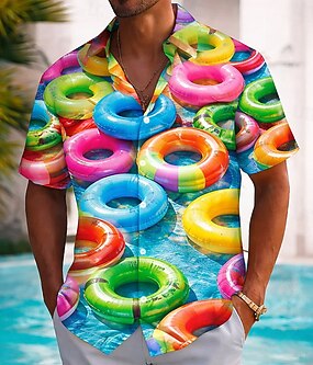 Pánské Plavecký kruh Vodní plovák Havajská košile Košile na knoflíky Aloha košile Krátký rukáv Havajské Dovolená Oblečení na pláž Léto Jaro Přehnutý 3D tisk košile s límečkem Vodní modrá Trávov