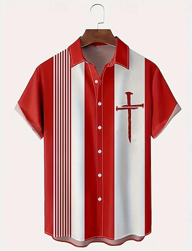Pánské Auto Košile pro volný čas Bowlingová košile Košile na knoflíky Krátký rukáv Vinobraní Na běžné nošení Ležérní Léto Jaro Kubánský límec Tlačítko nahoru Rubínově červená