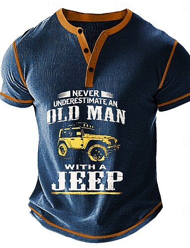 Pánské tričko s krátkým rukávem Henley - "Nikdy nepodceňujte starého muže s Jeepem" grafické tričko