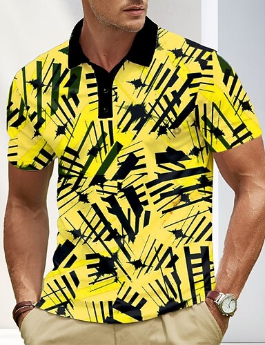 Pánské Abstraktní Geometrické tvary Pólo Krátký rukáv Polo tričko Klopa Na běžné nošení Oblečení na atletiku 3D tisk Knoflíky Léto Žlutá Vodní modrá Fialová