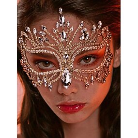 Dámská křišťálová maškarní maska s kamínky, luxusní zlatá maska na obličej pro ženy, elegantní kostýmní doplněk na maškarní plesy, večírky