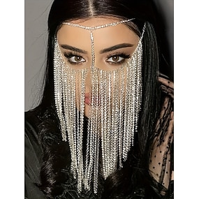 Dámská maska s kamínky a třásněmi - třpytivý střapec jako šperk na obličej, doplněk na večírky, festivaly, maškarní a klubové akce