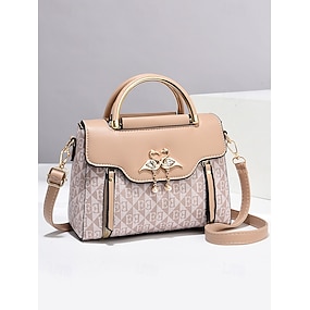 elegantní dámská béžová crossbody kabelka – luxusní monogramové provedení s přívěskem srdce a horní rukojetí