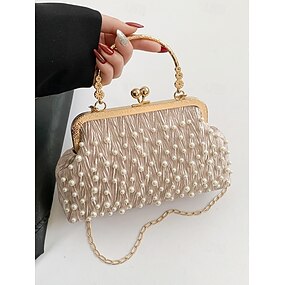 vintage perleťová kabelka – elegantní dámská večerní kabelka se zlatým rámem a řetízkovým popruhem na svatby, večírky a formální události černá bílá khaki