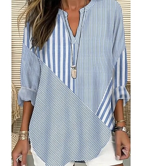 Ženská blůza len jako prodyšná lehká tunika V výstřih dlouhý rukáv bohémské běžné vršky bavlněný len grafika pruhované denní pracovní denní tištěné černá modrá zelená světle modrá