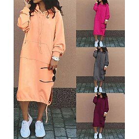 Dámské Dlouhé šaty Maxi šaty Šaty s kapucí Volnočasové šaty Zimní šaty Elegantní Módní Moderní Denní Venkovní Zimní šaty Volný Bez vzoru Dlouhý rukáv Kapuce Černá Světlá růžová Fialová Trávová zelená