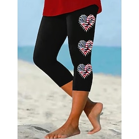 Kalhoty capri pro ženy k Dni nezávislosti legíny dovolená vintage módní délka po lýtka střední pas kalhoty grafický potisk vlajka měkké prodyšné elastické příležitostné každodenní dovolená