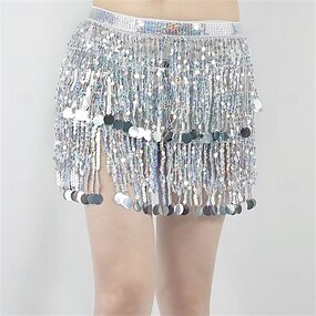 Samba Dancewear Ženská flitrová třásňová sukně jiskřivý třásňový šátek na boky pro břišní tanec metalické pásy na rave party kostým pro vystoupení